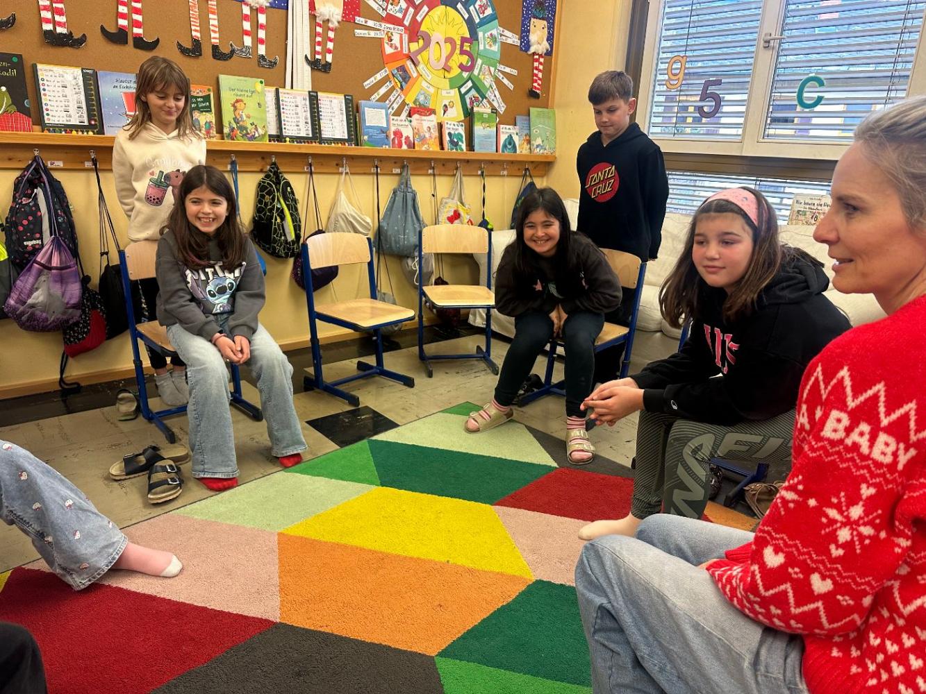 UVÜ Buddys – 3. Nachmittag: Die SchülerInnen eröffnen den Nachmittag mit interessanten und lustigen Berichten aus ihrem Buddy Leben. Das Lieblingsspiel „Zwinkern“ darf nicht fehlen, ebenso eine gemeinsame Jause und danach wird für das Rorate Frühstück gebastelt, damit sich die Buddy Kinder bei ihrem ersten Frühstück im Pfarrsaal herzlich willkommen fühlen.